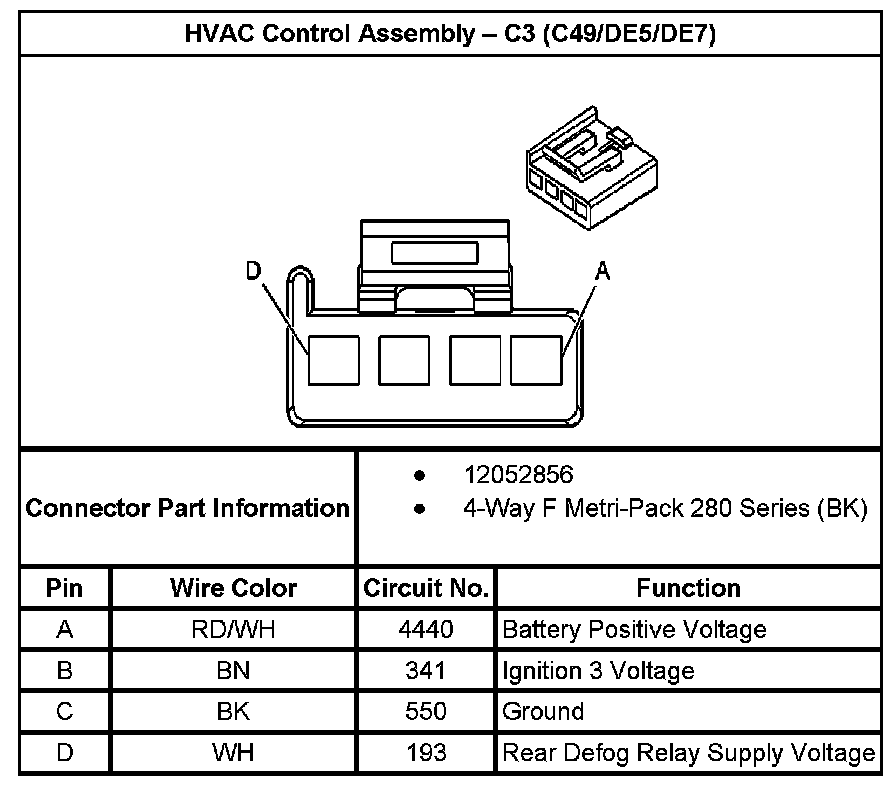 HVAC Control Assembly - C3 (With RPO Code C49/DE5/DE7):