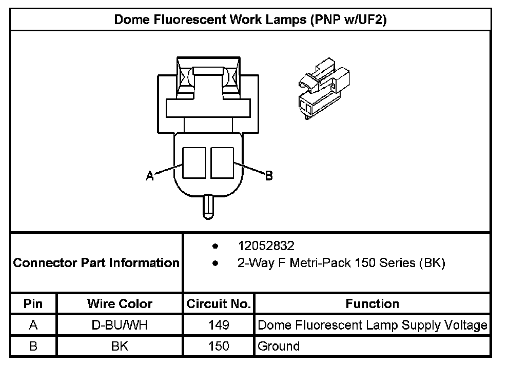 Dome Fluorescent Work Lamps (PNP With RPO Code UF2):
