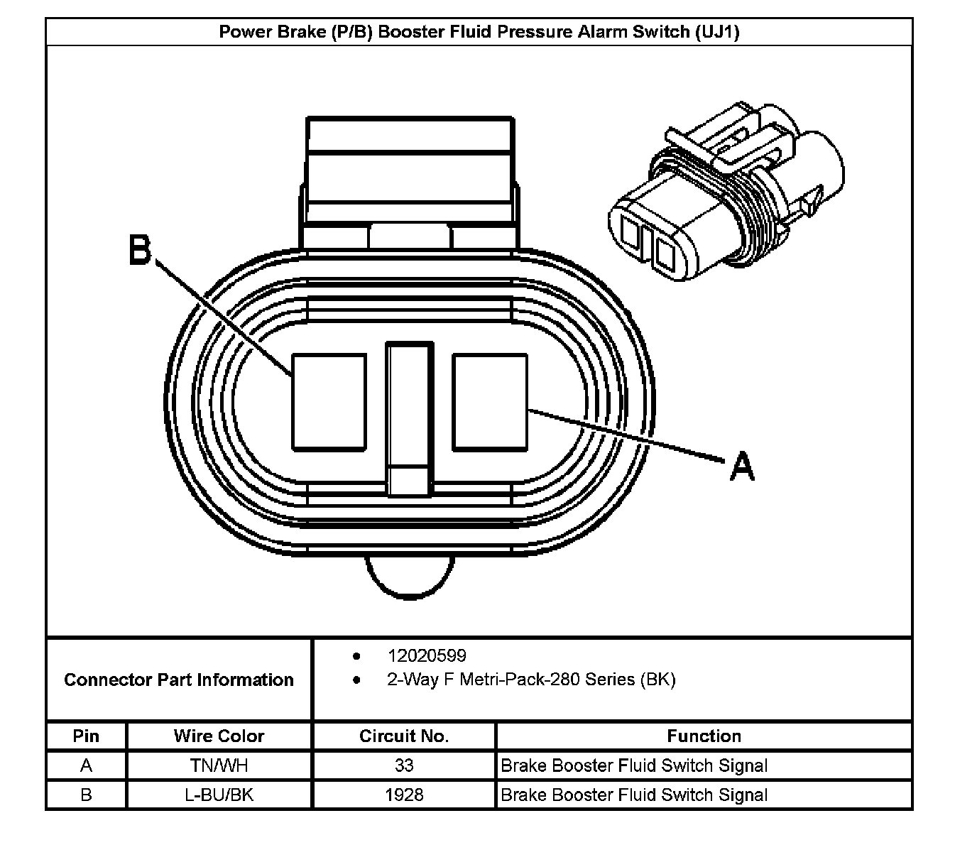 Power Brake (PB) Booster Fluid Pressure Alarm Switch (UJ1)