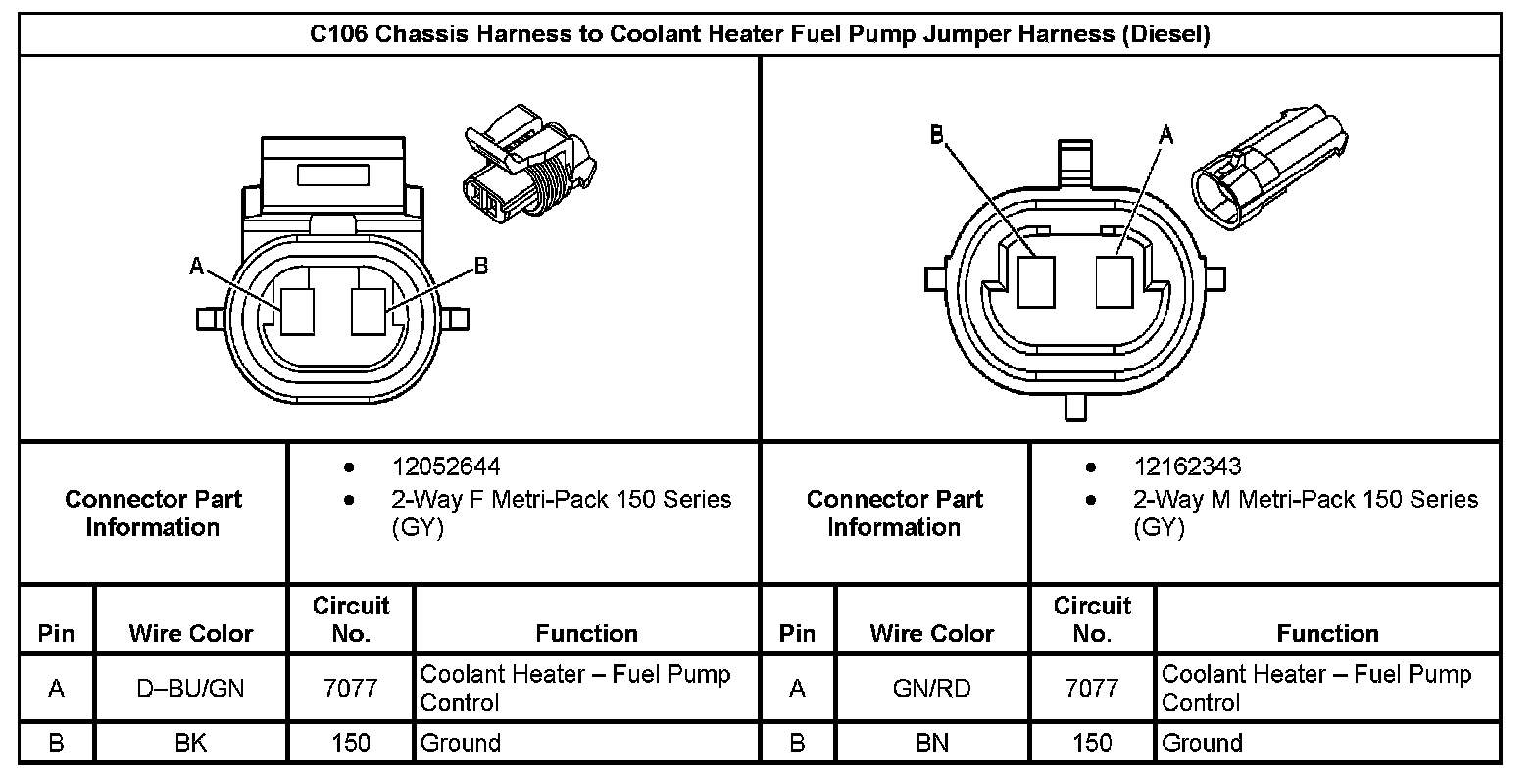 C106 Chassis Harness to Coolant Heater Fuel Pump Jumper Harness: