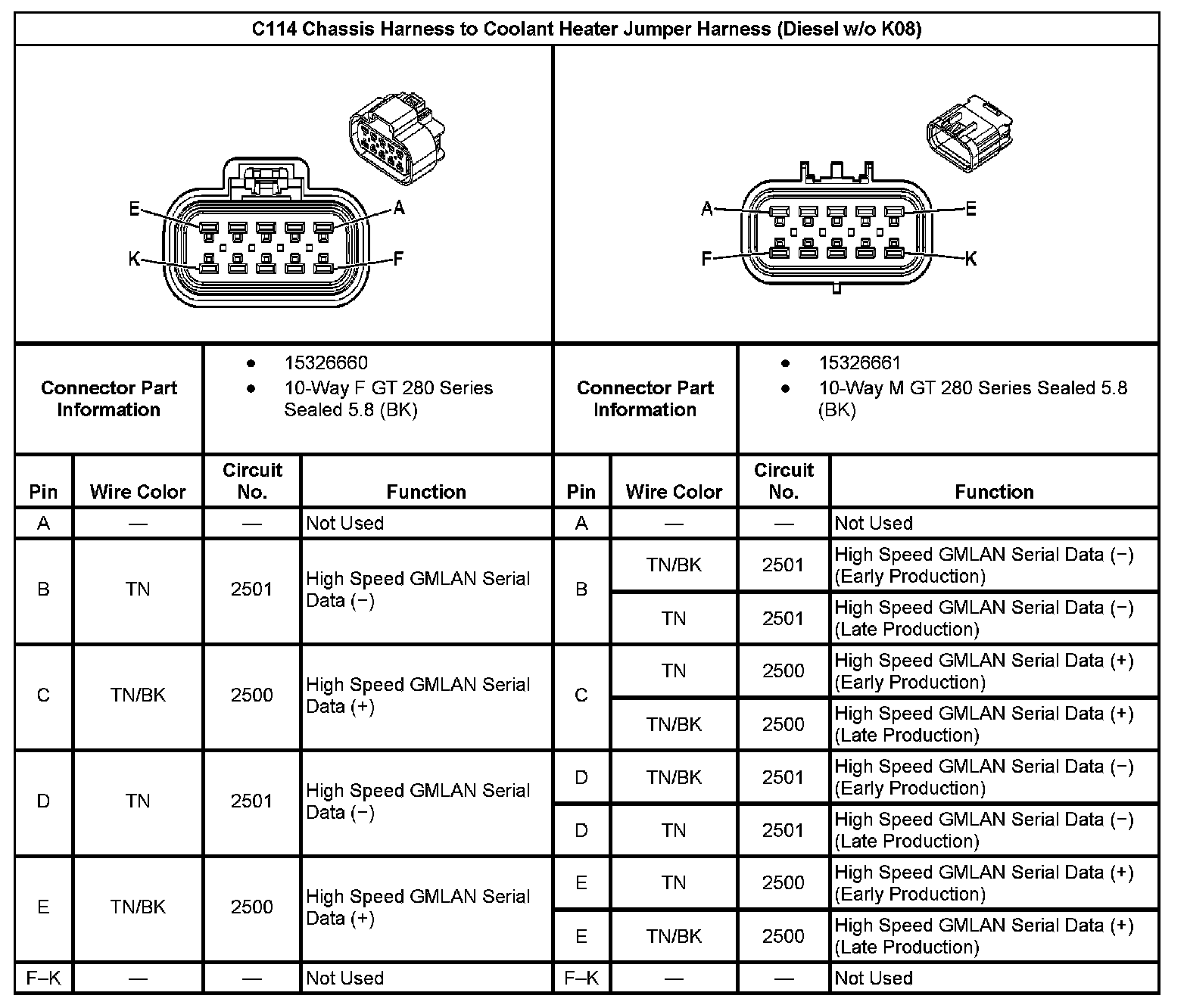C114 Chassis Harness to Coolant Heater Jumper Harness (Without RPO Code K08):