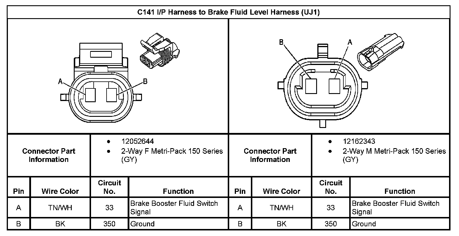 C141 I/P Harness to Brake Fluid Level Harness (With RPO Code UJ1):