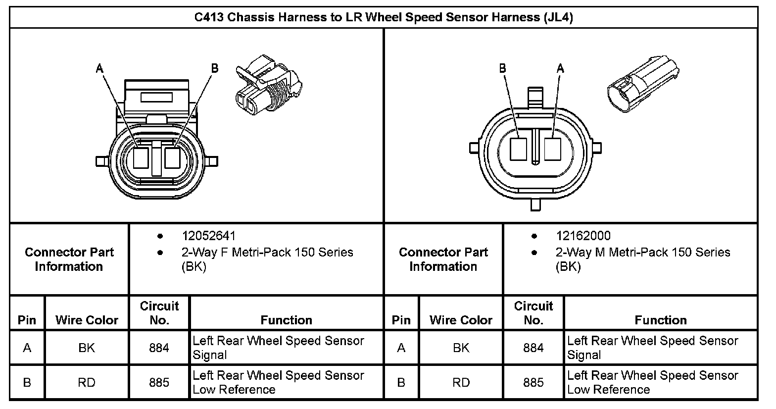 C413 Chassis Harness to LR Wheel Speed Sensor Harness (With RPO Code JL4):