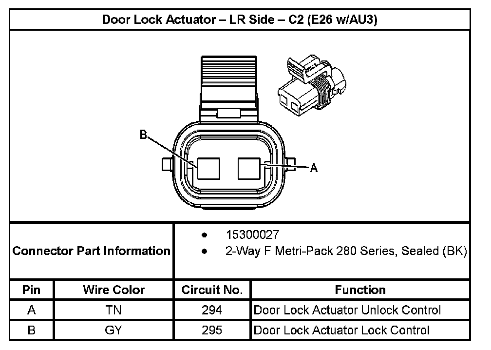 Door Lock Actuator - LR Side - C2 (With RPO Code E26/AU3):