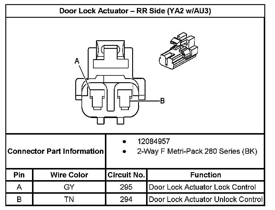 Door Lock Actuator - RR Side (With RPO Code YA2/AU3):