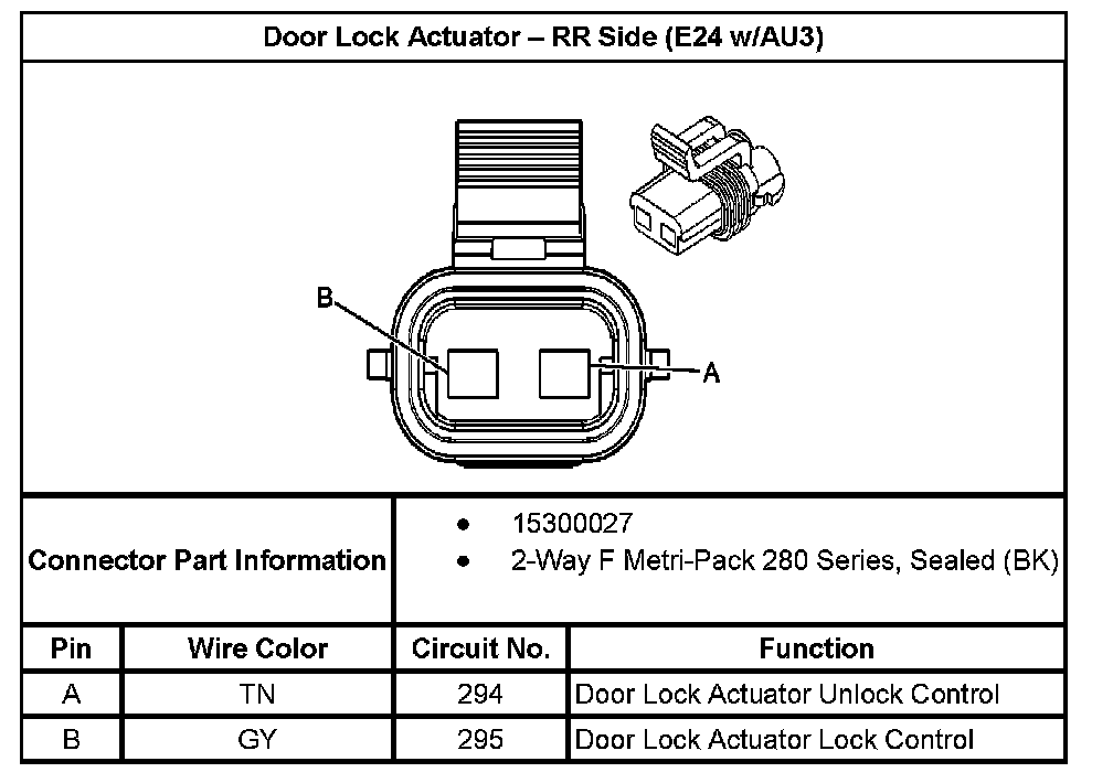 Door Lock Actuator - RR Side (With RPO Code E24/AU3):