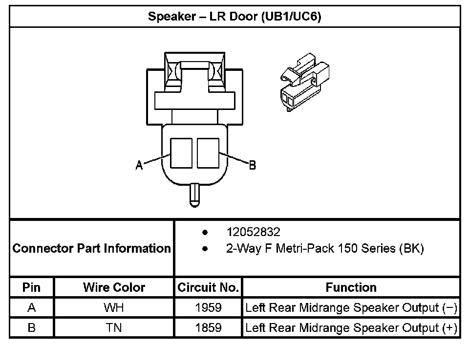 Speaker - LR Door (With RPO Code UB1/UC6):