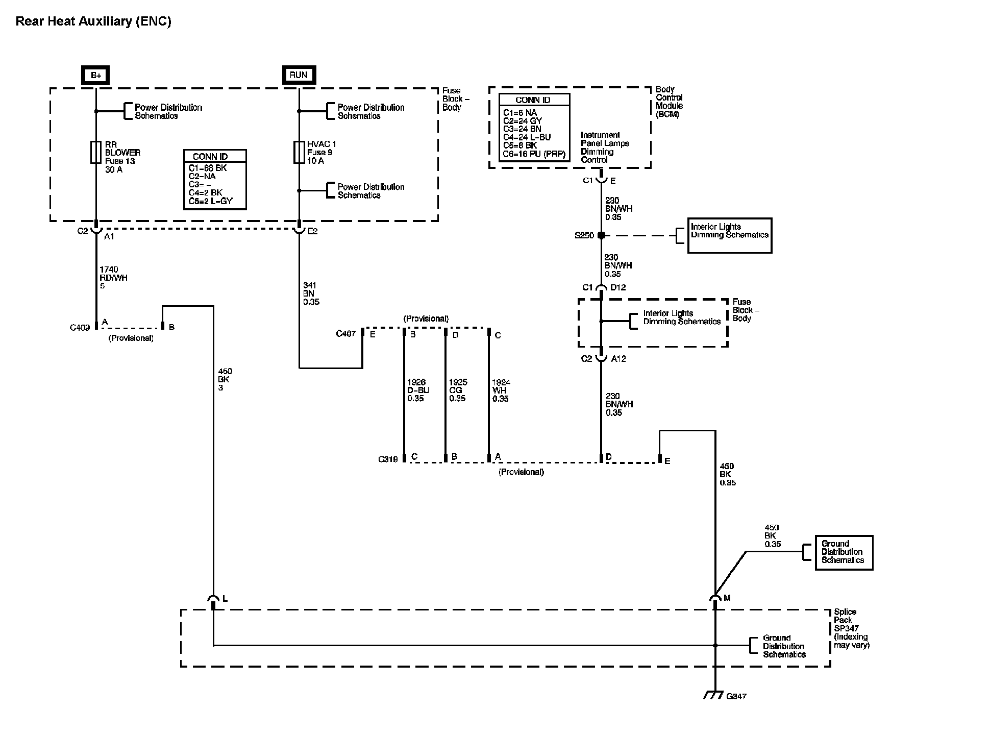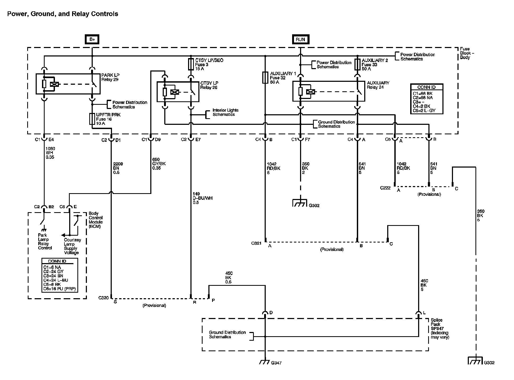 The locations of the Connectors, Grounds, Splices, and Grommets shown within these diagrams can be found via their numbers at Vehicle Locations.