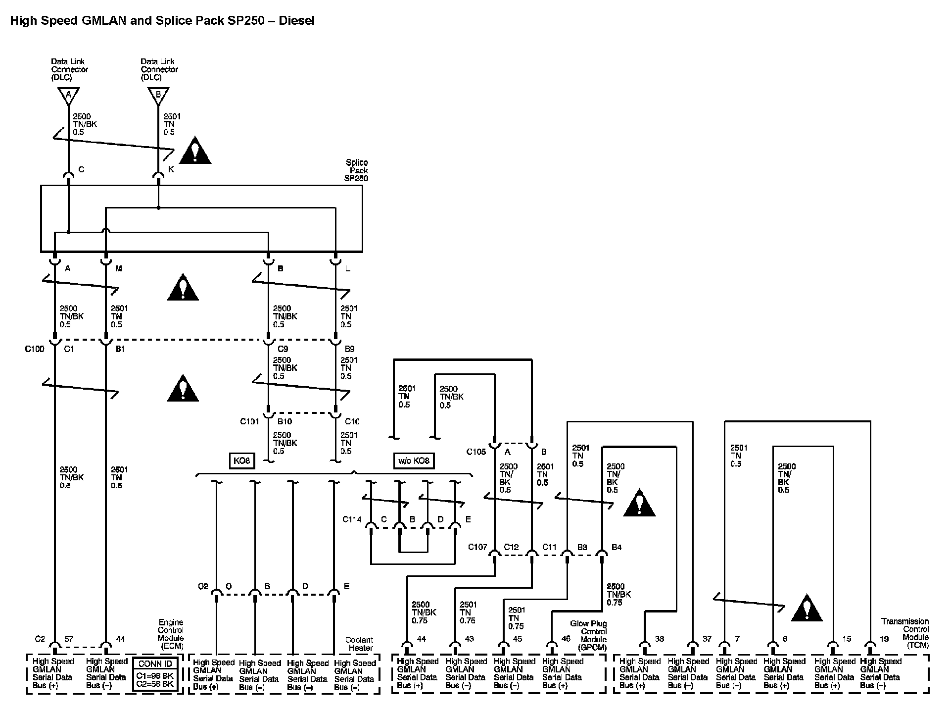 The locations for the Connectors, Grounds, Splices, and Grommets shown within these diagrams can be found via their numbers at Vehicle Locations.