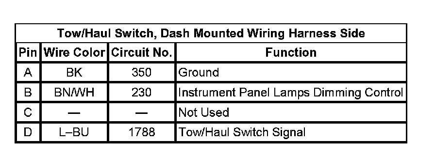 Tow/Haul Switch, Dash Mounted Wiring Harness Side: