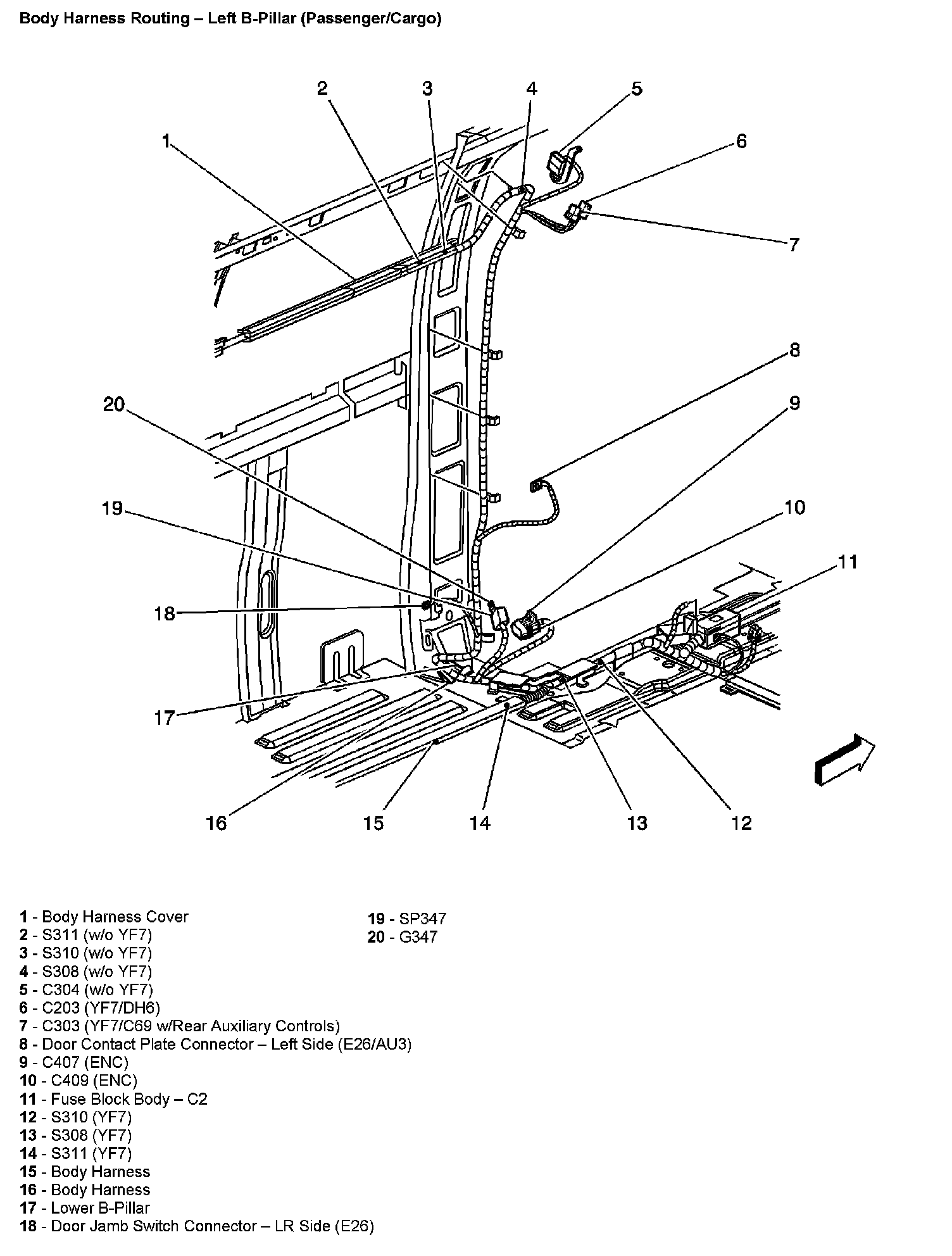 Body Harness Routing - Left B-Pillar (Passenger/Cargo):