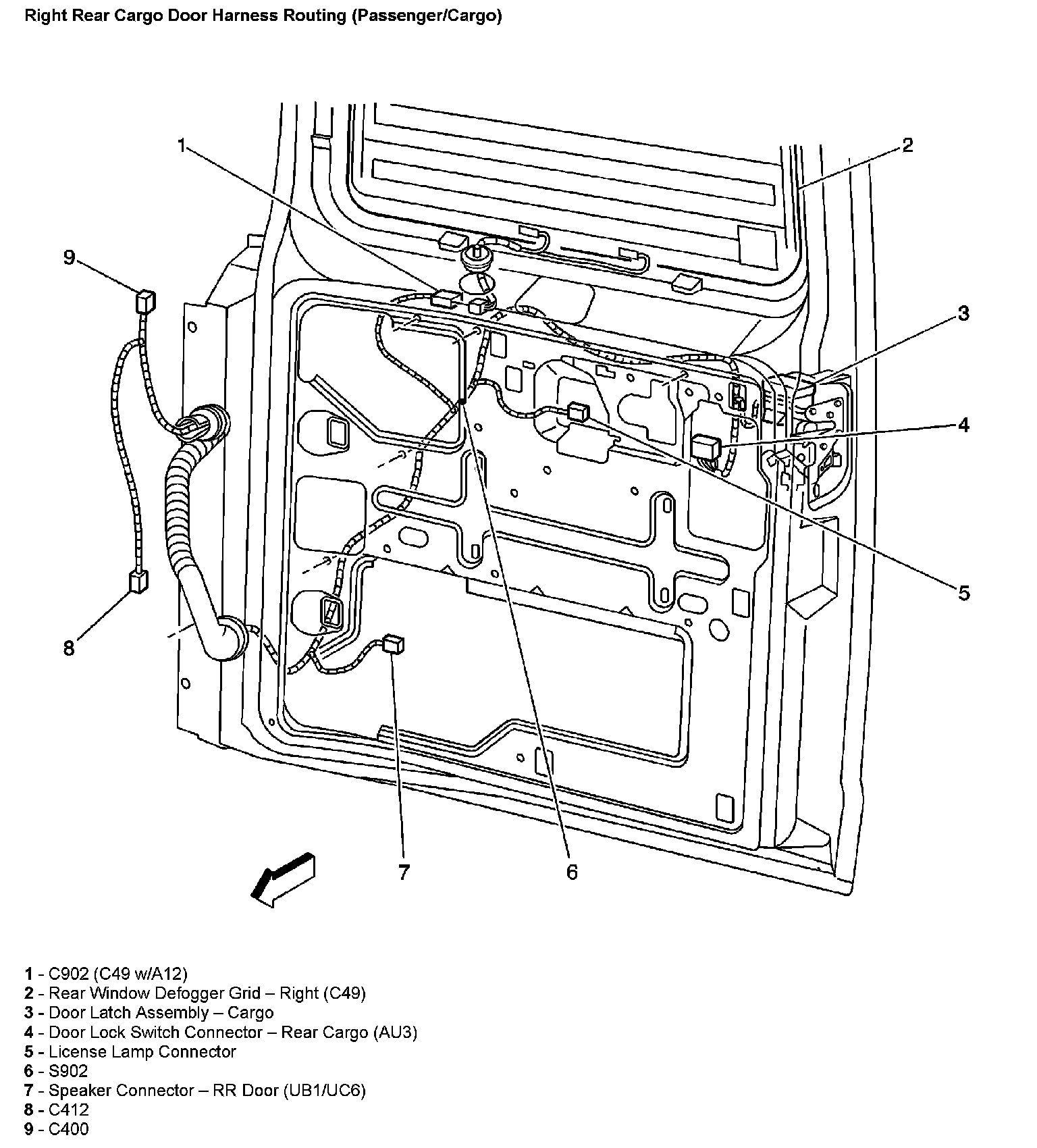 Right Rear Cargo Door Harness Routing (Passenger/Cargo):