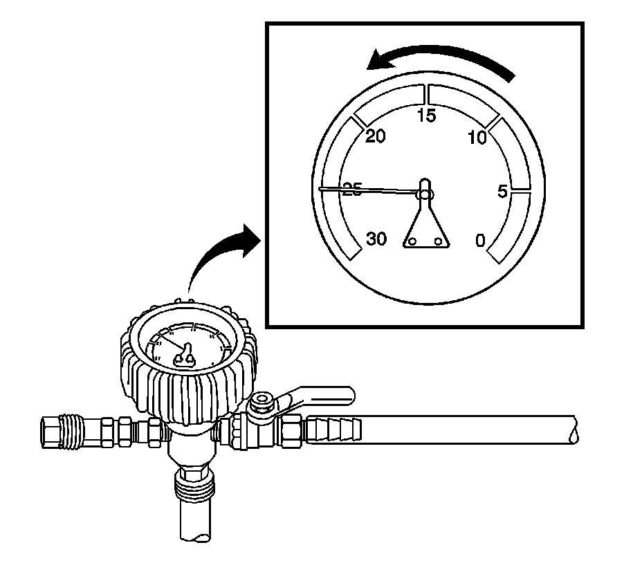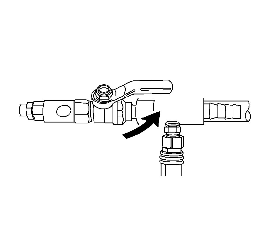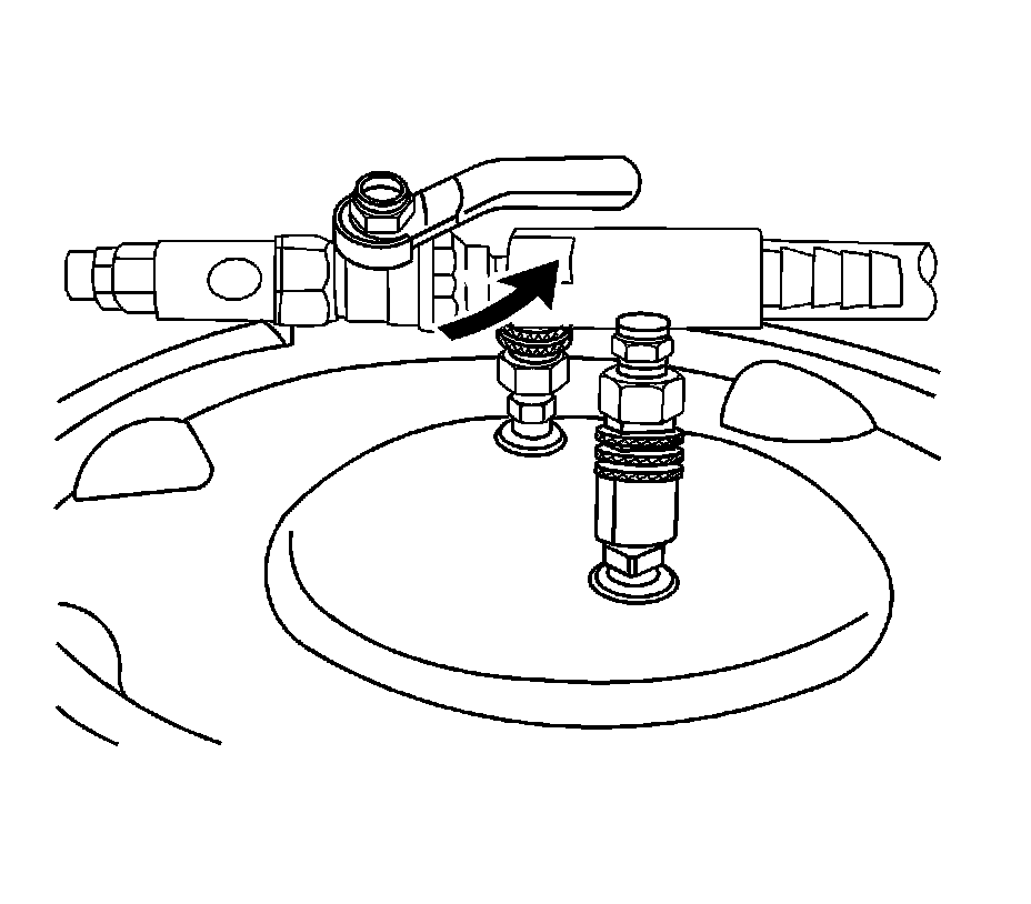15. Slowly open the valve on the vacuum gage assembly. When the coolant reaches the top of the fill hose, close the valve. This will eliminate air from the fill hose.