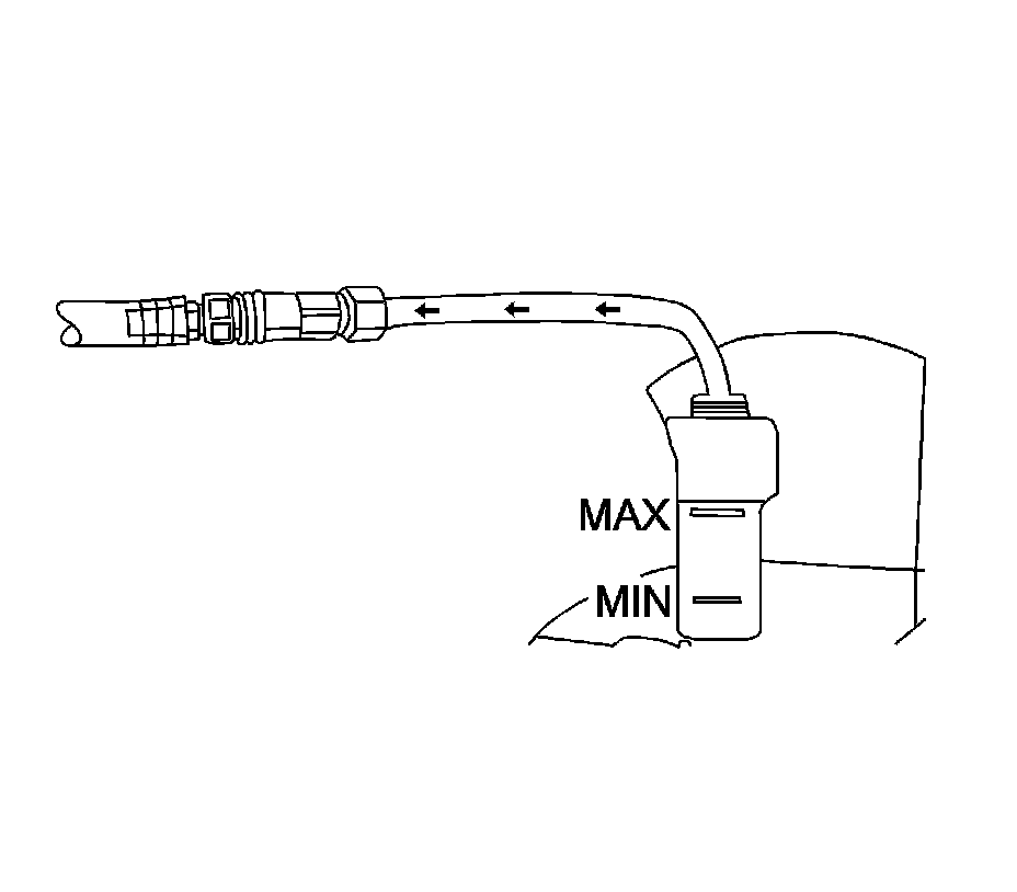 14. To aid in the fill process, position the graduated reservoir above the coolant fill port.
