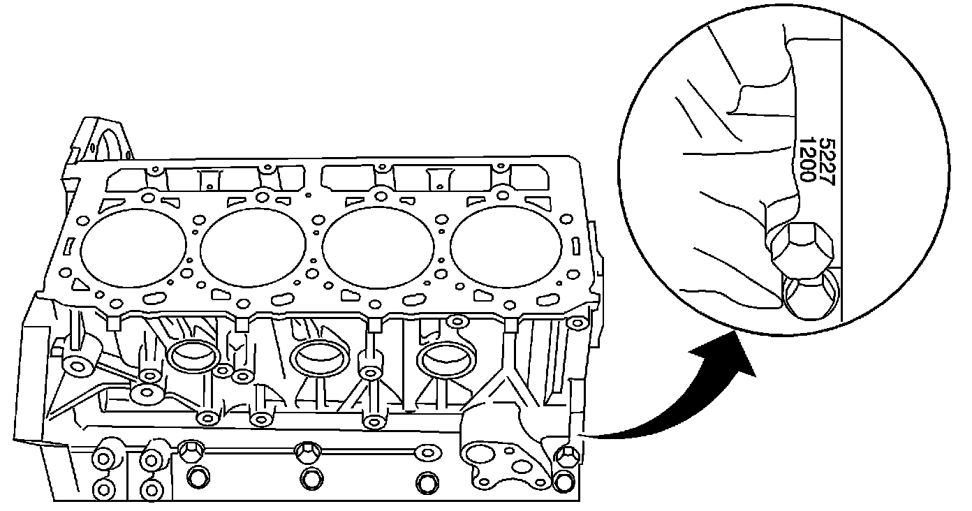When performing service work on ANY model year Duramax(TM) engine, the main bearing cap bolts must be replaced with the same type of bolt that was originally installed. Use the raised circle identifying mark on the bolt head to determine which bolt to use.