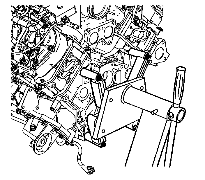 After the flywheel housing has been removed, mount the engine block to a suitable engine stand.