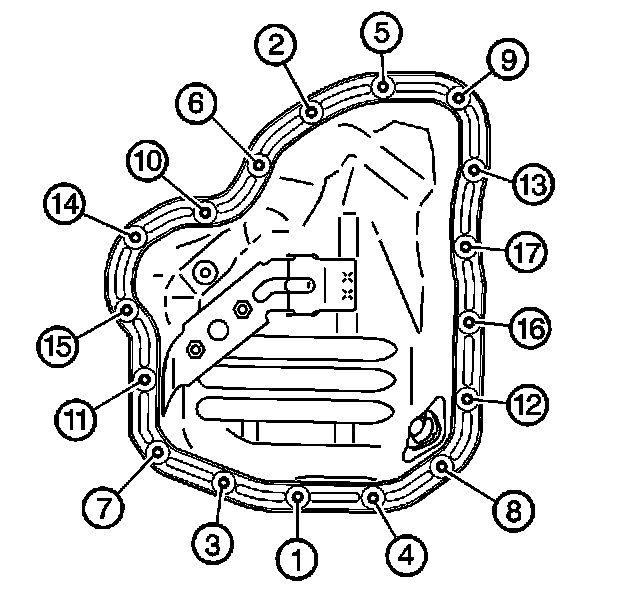 Tighten the lower oil pan bolts and nuts in sequence to 10 Nm (89 inch lbs.).