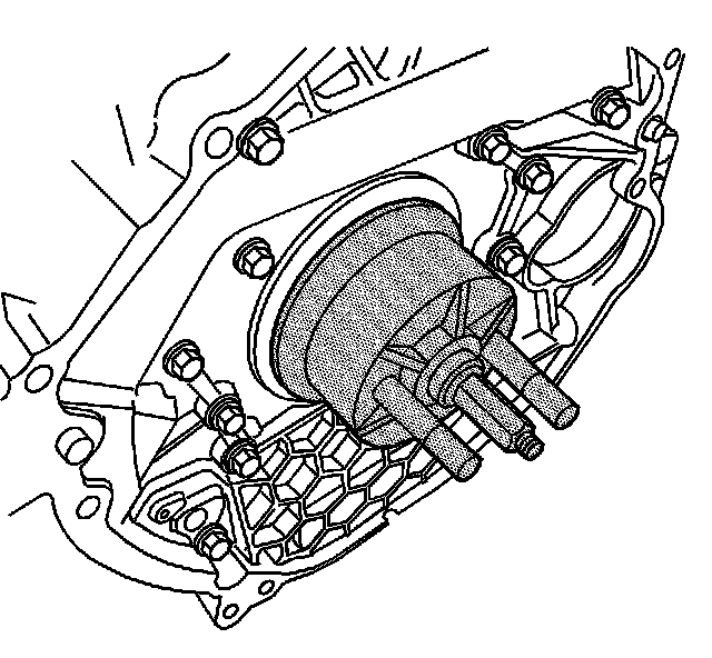 3. Press the crankshaft rear oil seal into position using the J44642. The J44642 will bottom out when the seal reaches the proper depth.