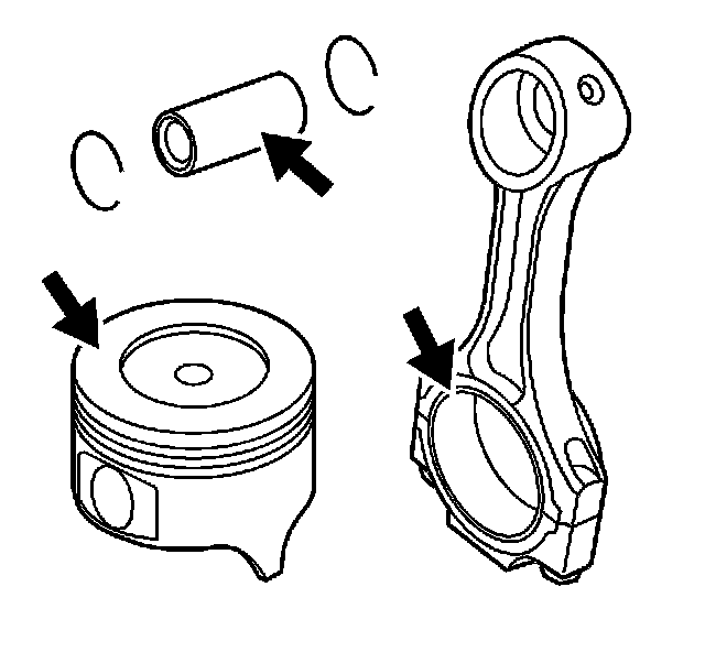 ^ Replace the connecting rod if the piston pin to connecting rod small end clearance is beyond specifications. The connecting rod small end bushing is not serviceable.