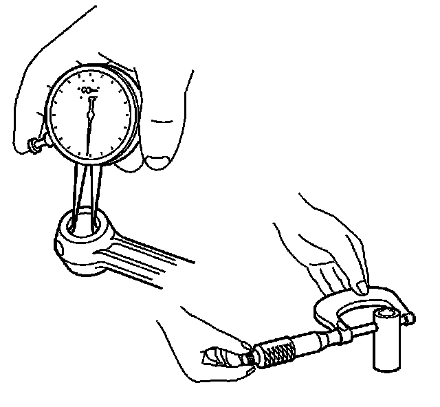 ^ Subtract the piston pin measurement that was taken previously from the connecting rod small end measurement. The difference between these two measurements will be the piston pin to connecting rod clearance.