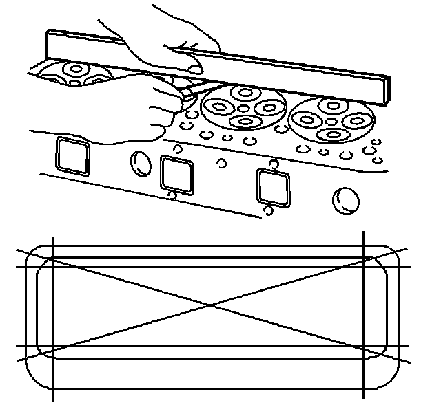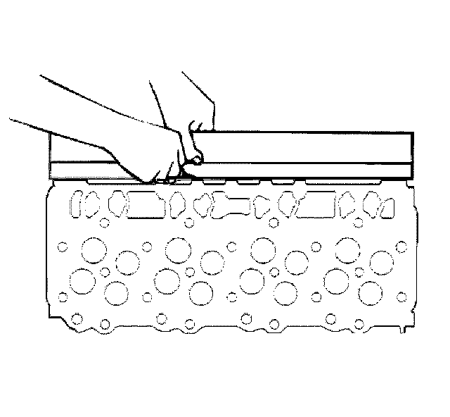 6. Measure the cylinder head intake manifold deck for warpage. A cylinder head intake manifold deck with warpage in excess of 0.3 mm (0.011 inch) within a 493 mm (19.41 inch) area must be replaced.