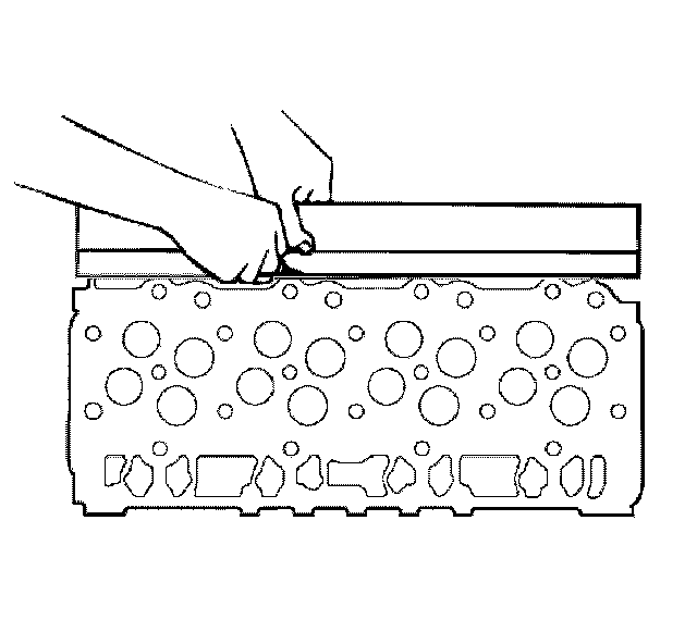 4. Measure the cylinder head for warpage with a straight edge and a feeler gauge. A cylinder head block deck with warpage in excess of 0.075 mm (0.0030 inch) within a 516.5 mm (20.33 inch) area must be replaced.