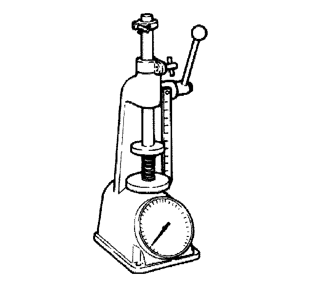 7. Measure the valve spring tension using J9666. Replace the valve spring if the valve spring tension is less than 315.5 N (7.09 lbs.) at 41 mm (1.6142 inch).