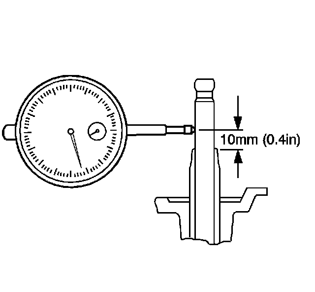 2. Move the valve stem from side to side while reading the total movement on the dial indicator. If the measured valve exceeds 0.20 mm (0.0079 inch), replace the cylinder head.