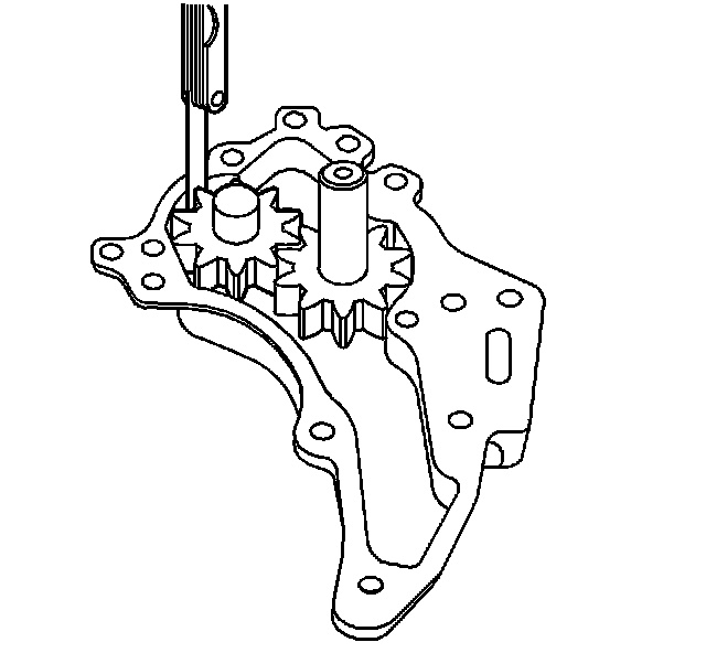 3. Use a feeler gauge to measure the clearance between the gear teeth and the oil pump housing. The production clearance is 0.125 - 0.221 mm (0.0049 - 0.0087 inch) and the service limit is 0.221 mm (0.0087 inch).