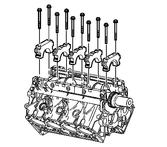 7. Install the remaining four crankshaft bearing caps.