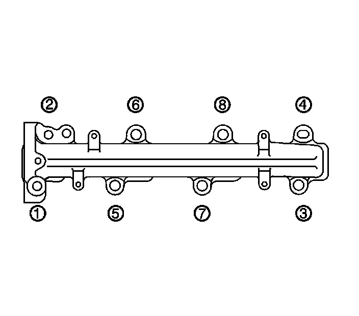 Tighten the exhaust manifold bolts and nuts to 38 Nm (28 ft. lbs.) in the proper sequence.