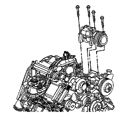 3. Remove the discharge hose bolt (2) from the A/C compressor.