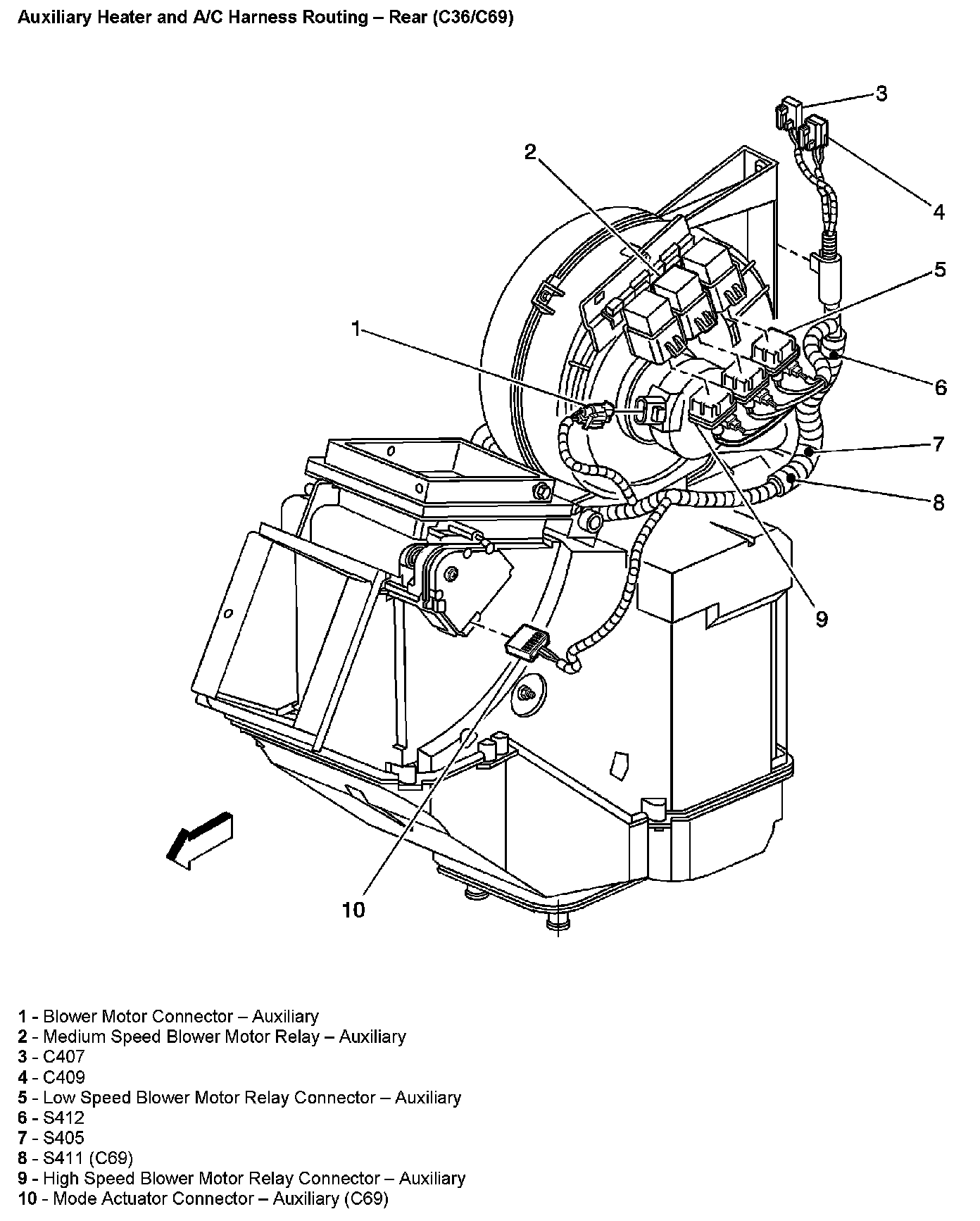 Auxiliary Heater And A/C Harness Routing - Rear (With RPO Code C36/C69):