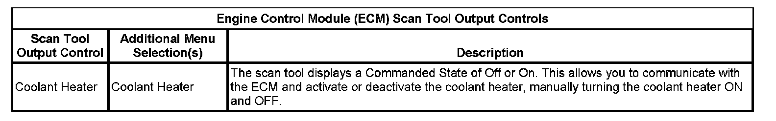 Engine Control Module (ECM) Scan Tool Output Controls: