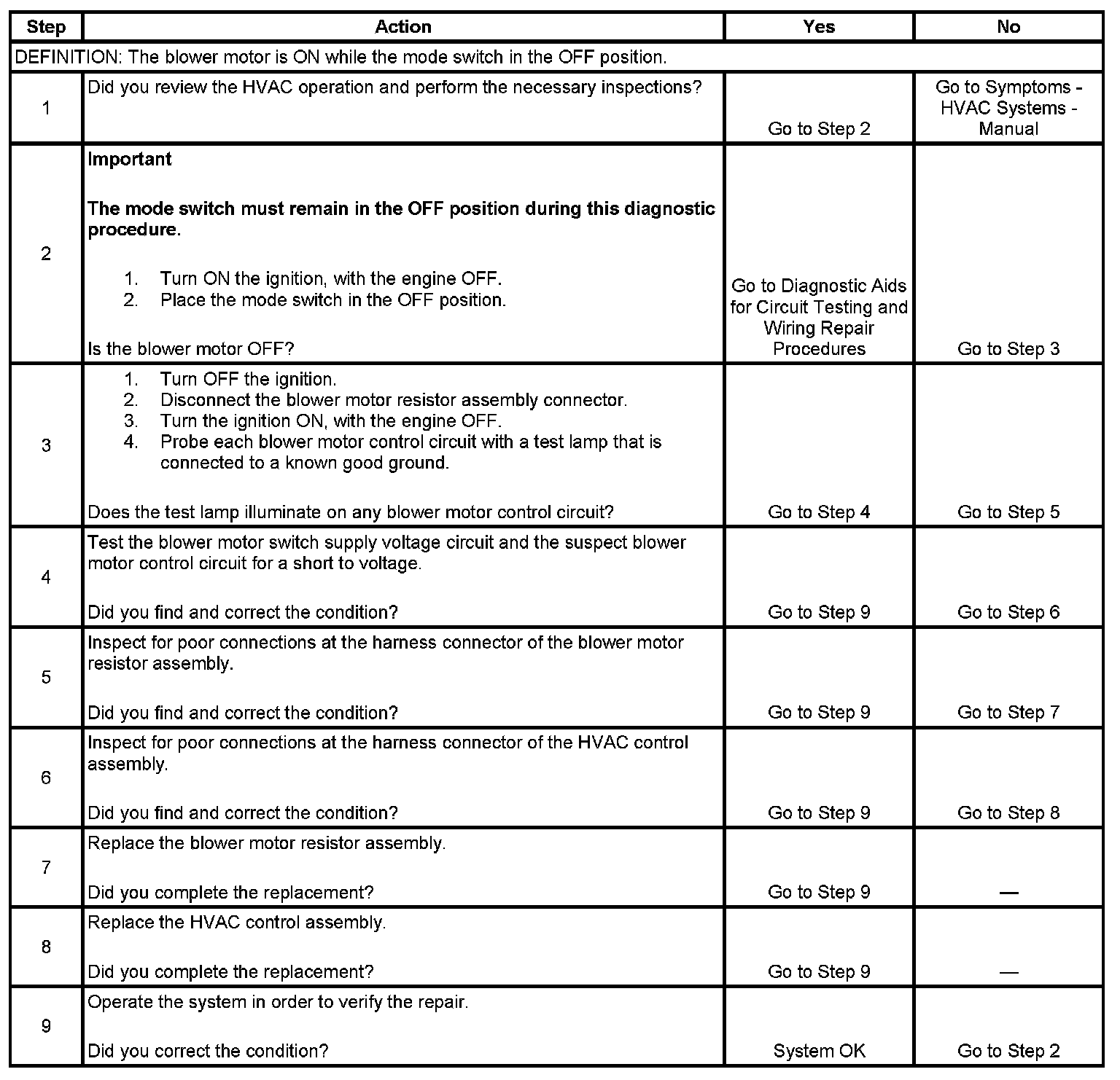 2. This step checks for continuous operation of the blower motor.