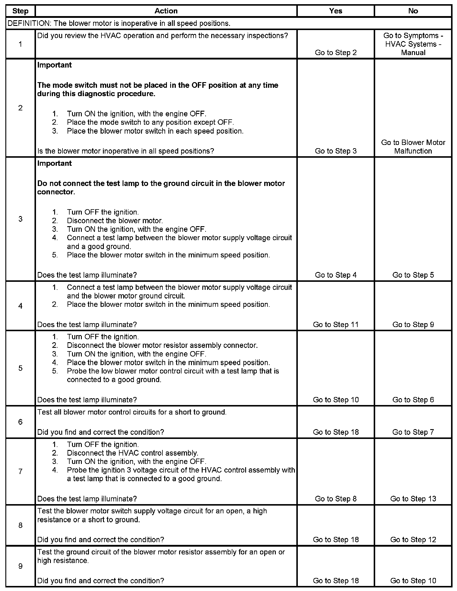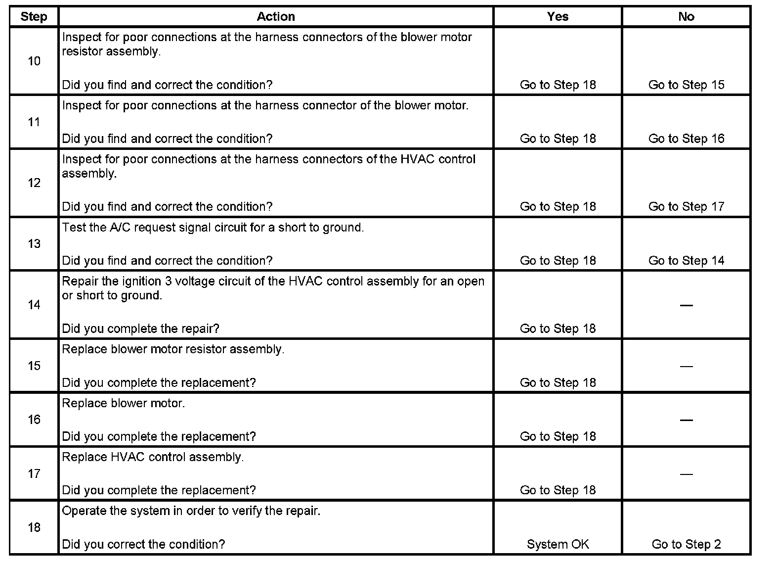 4. This step tests for a possible open in the blower motor resistor assembly or blower motor ground circuit.