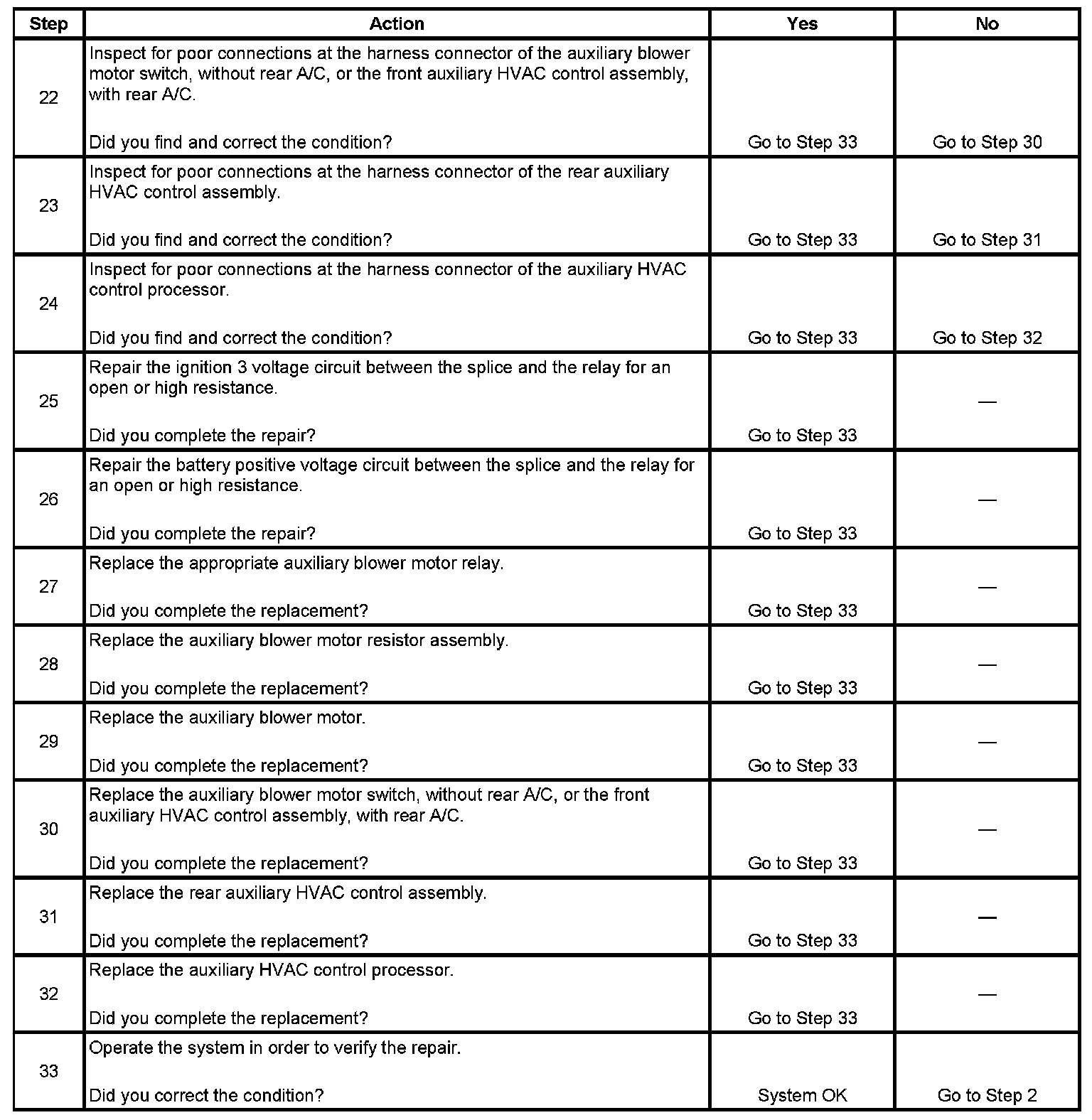 14. Test the blower motor control circuit that corresponds with the inoperative blower motor speed.