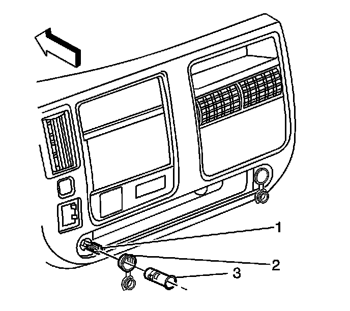 6. Pull the cigar lighter housing (3) and the cigar lighter retainer (2) out of the trim plate.