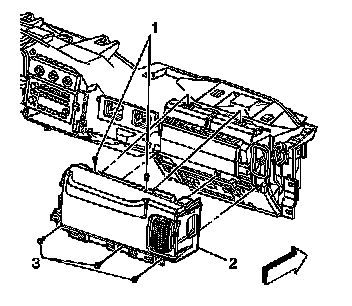 3. Remove the instrument panel (I/P) upper trim pad. Refer to Trim Pad Replacement - Instrument Panel (I/P) Upper (Removal and Replacement).