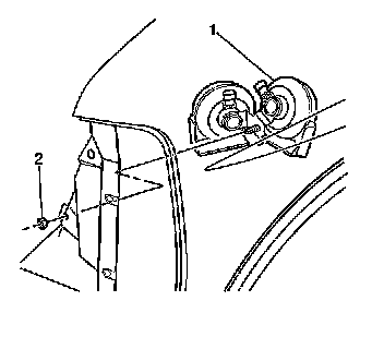 5. Install the nut (2) in order to retain the horn mounting bracket (1) to the vehicle.