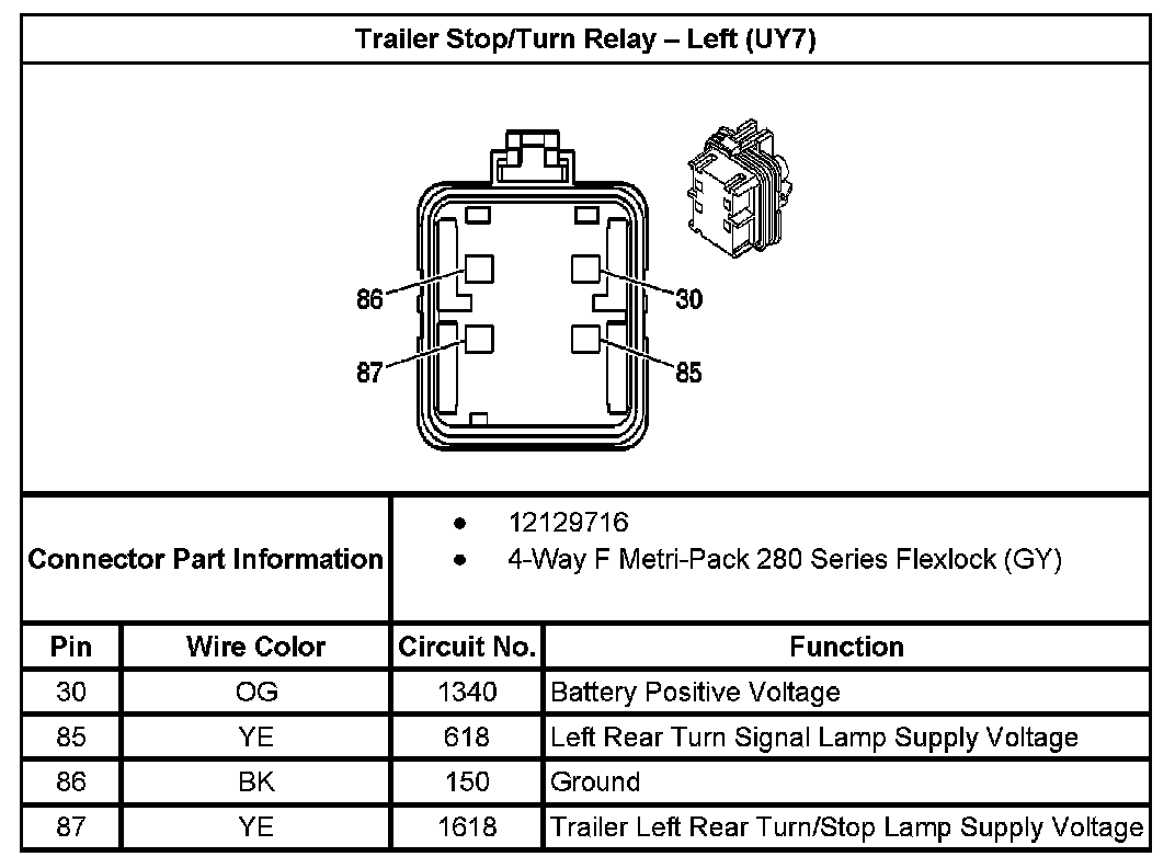 Trailer Stop/Turn Relay - Left (With RPO Code UY7):