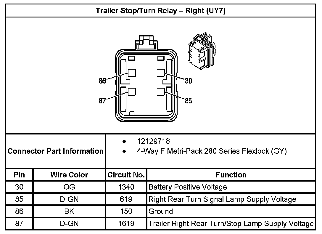 Trailor Stop/Turn Relay - Right (With RPO Code UY7):