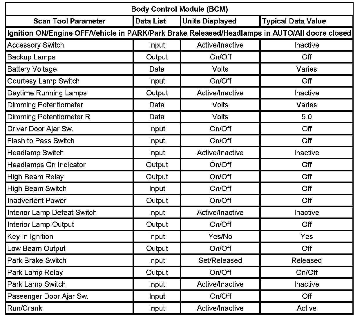 Scan Tool Data List