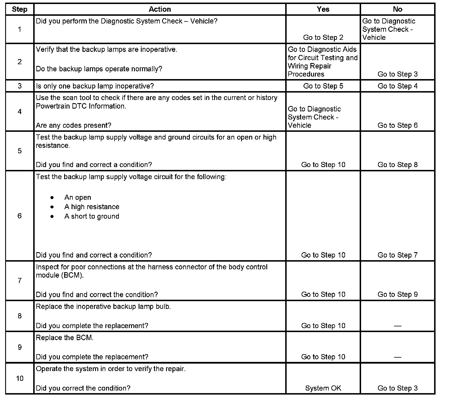 Backup Lamps Inoperative
