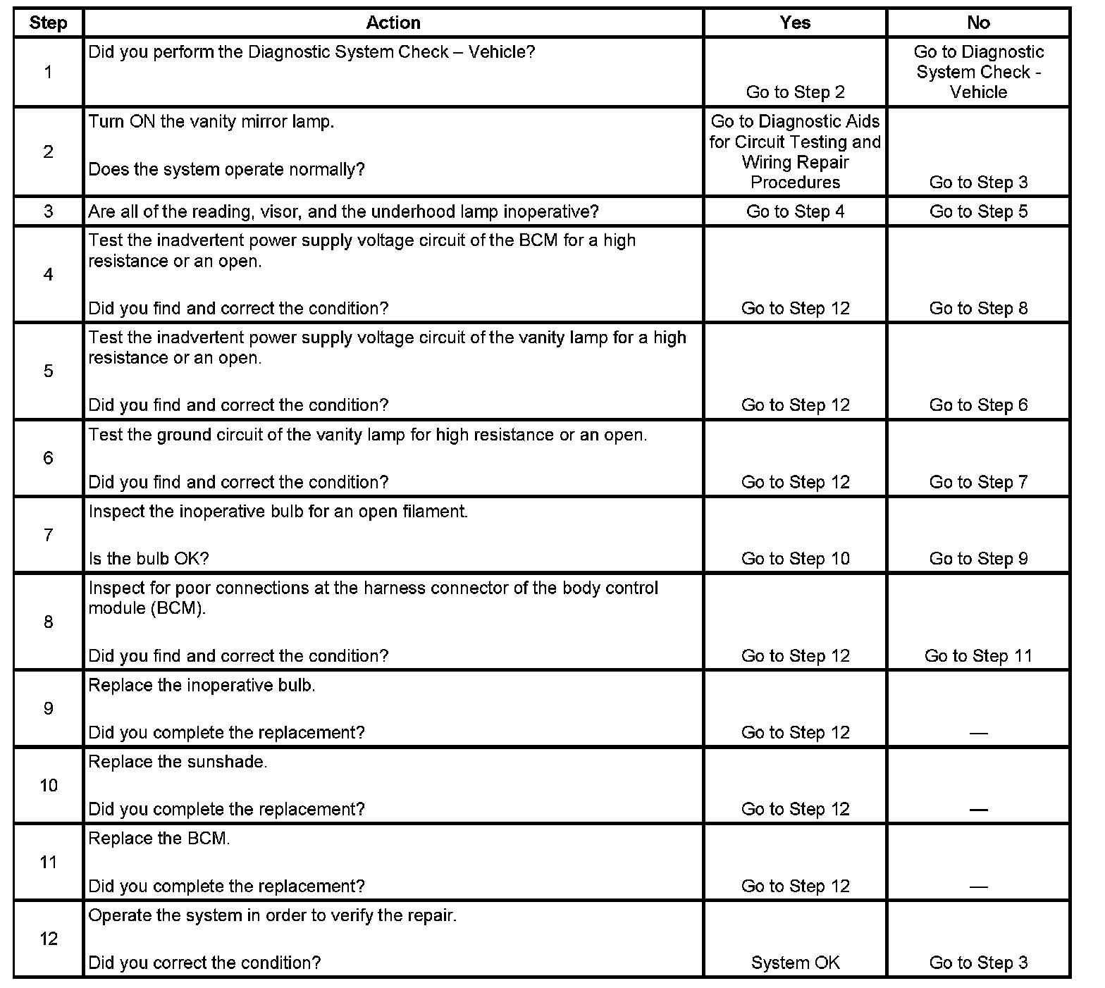Vanity Mirror Lamp(s) Inoperative