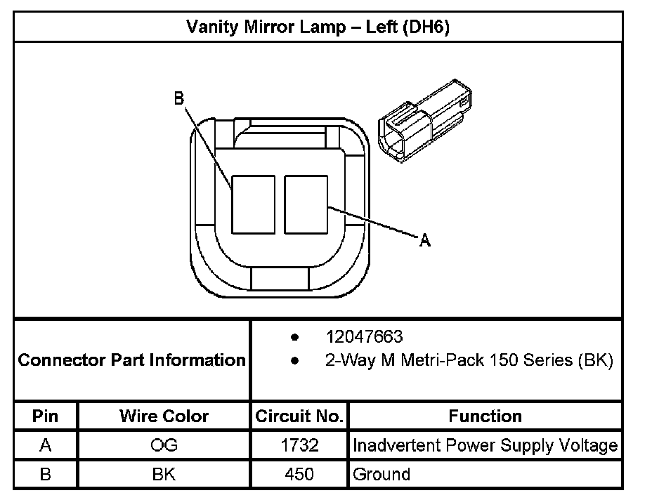 Vanity Mirror Lamp - Right (With RPO Code DH6):