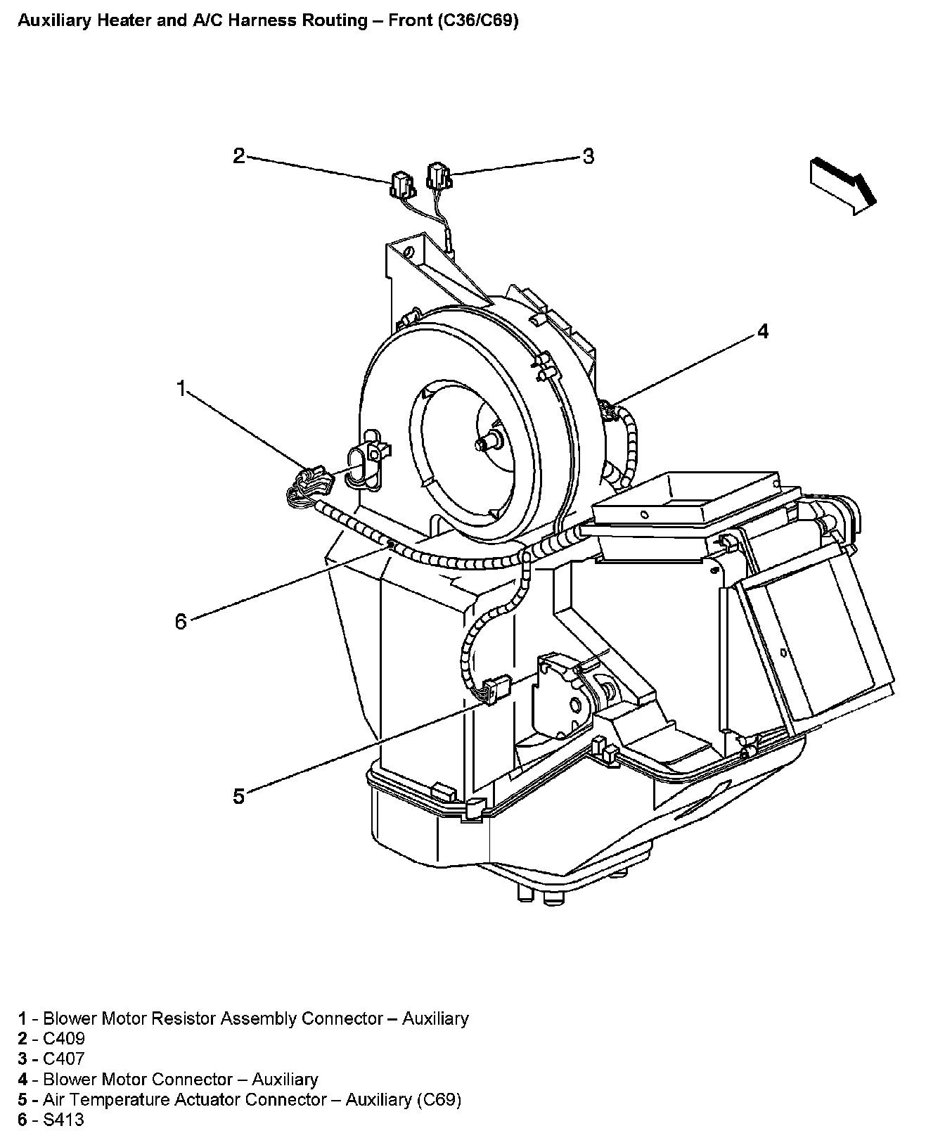 Auxiliary Heater and A/C Harness Routing - Front (With RPO Code C36/C69)