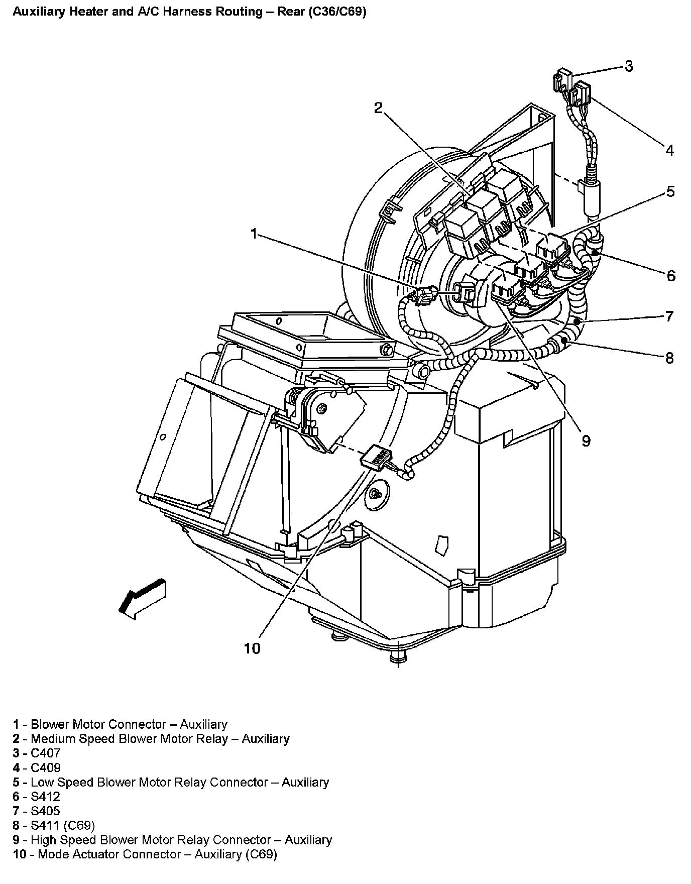 Auxiliary Heater and A/C Harness Routing - Rear (With RPO Code C36/C69)
