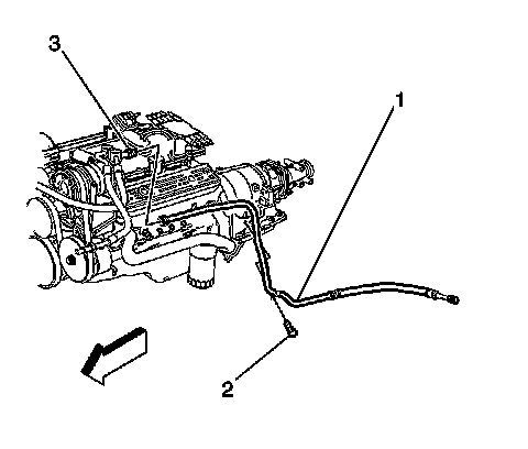 3. Install the bolt retaining the hose (1) to the transmission bracket.