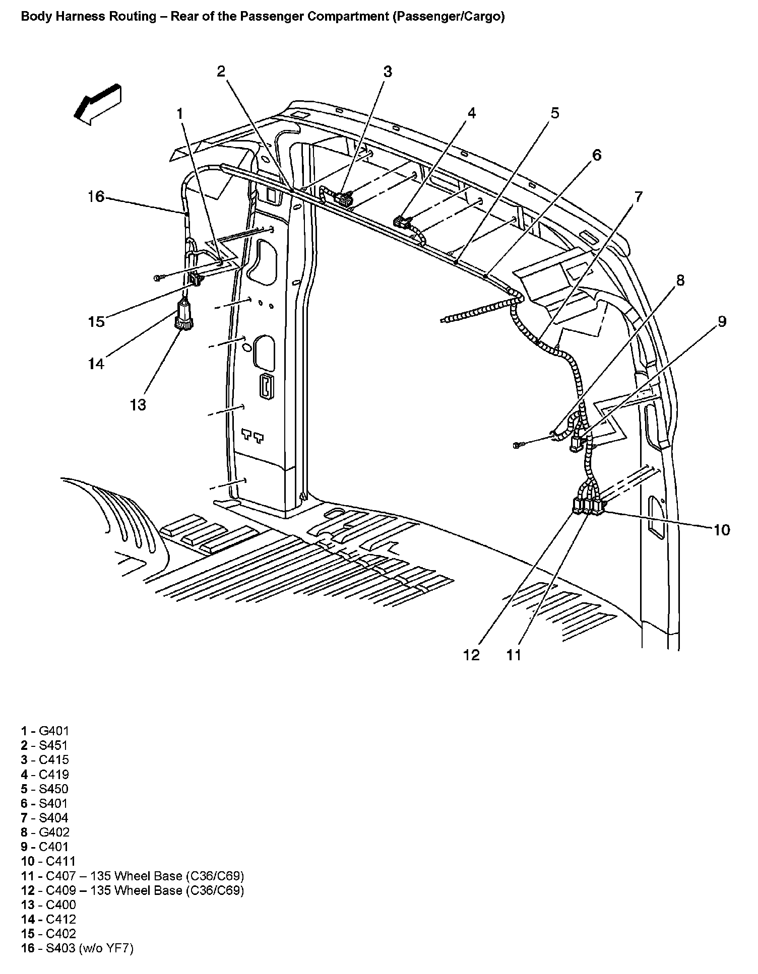 Body Harness Routing - Rear of the Passenger Compartment (Passenger/Cargo)